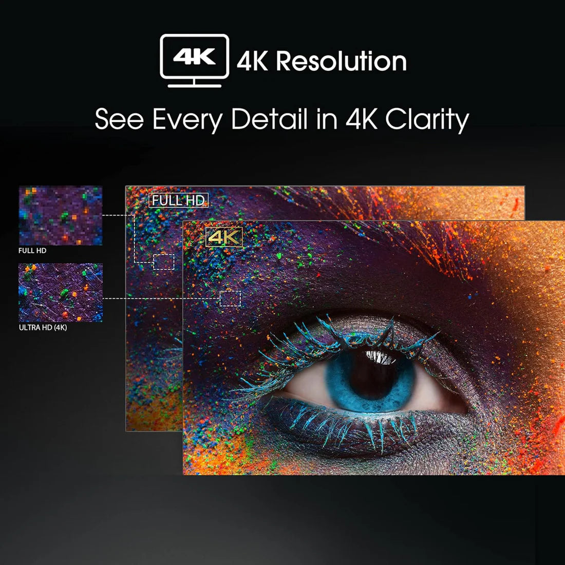 4K resolution improves upon Full High Definition with 3840 x 2160 pixels. More pixels on the screen produces a more clear and succinct picture making content look more realistic and true-to-life. Combined with 's AIUHD Up scaler, non-4K content will get enhanced to near-4K quality.